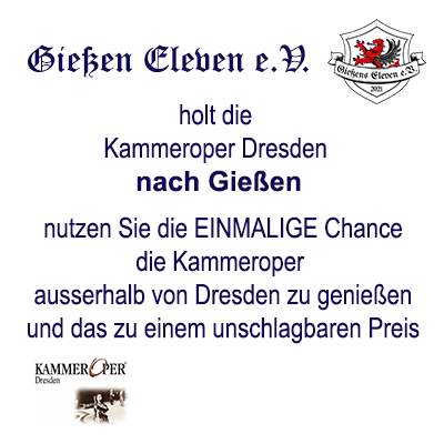 Sie können nur das Konzert genießen oder aber in der Pause oder nach dem Konzert in lockerer Runde, gemeinsam mit den Gießen Elevens e.V. und den Künstlern einen Imbiss zu sich nehmen